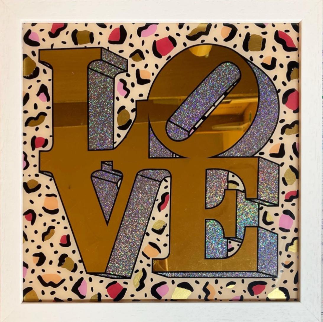 24ct gold, enamel and spray paint, framed in a white frame, signed on reverse