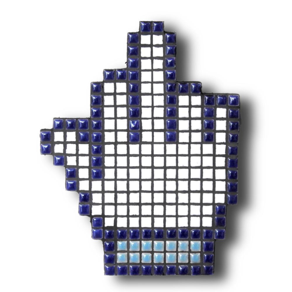 Mosaic tiles on wood, signed on reverse
