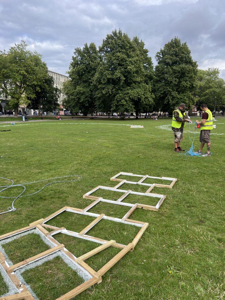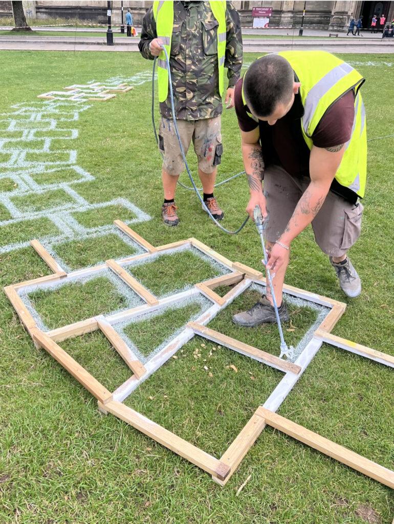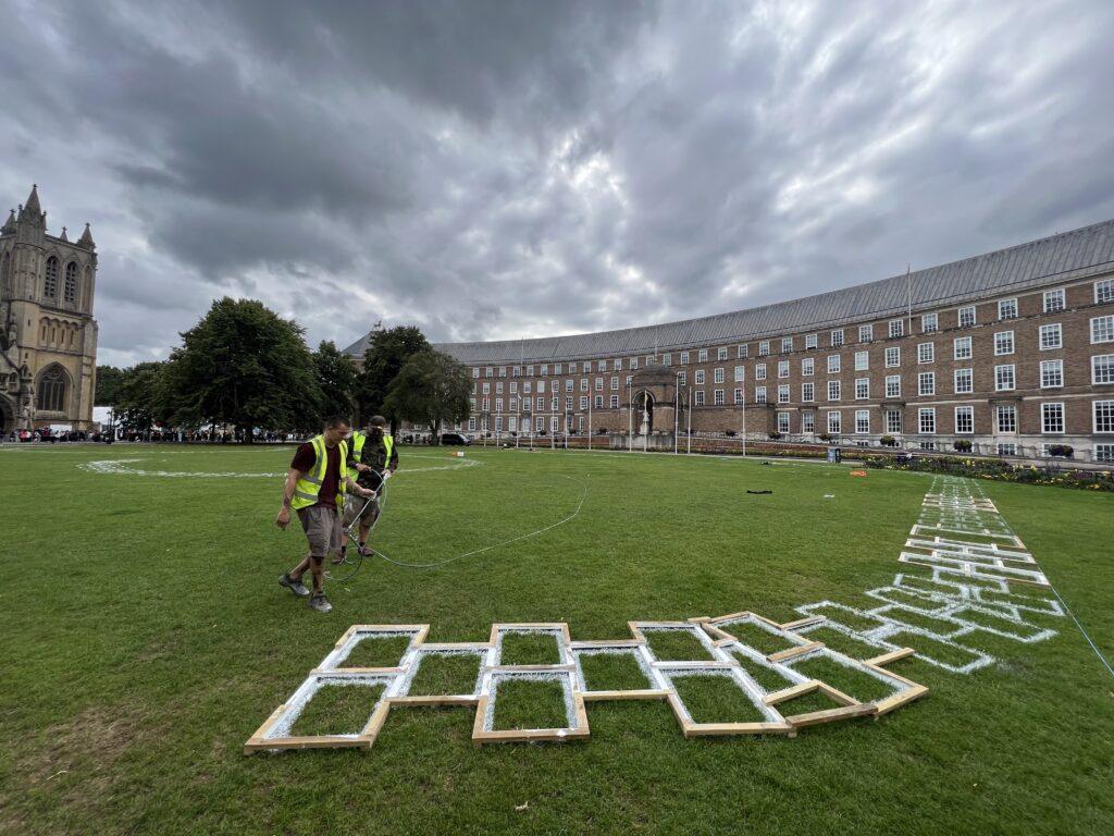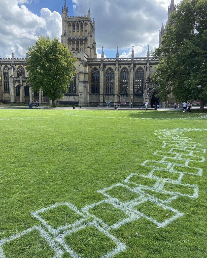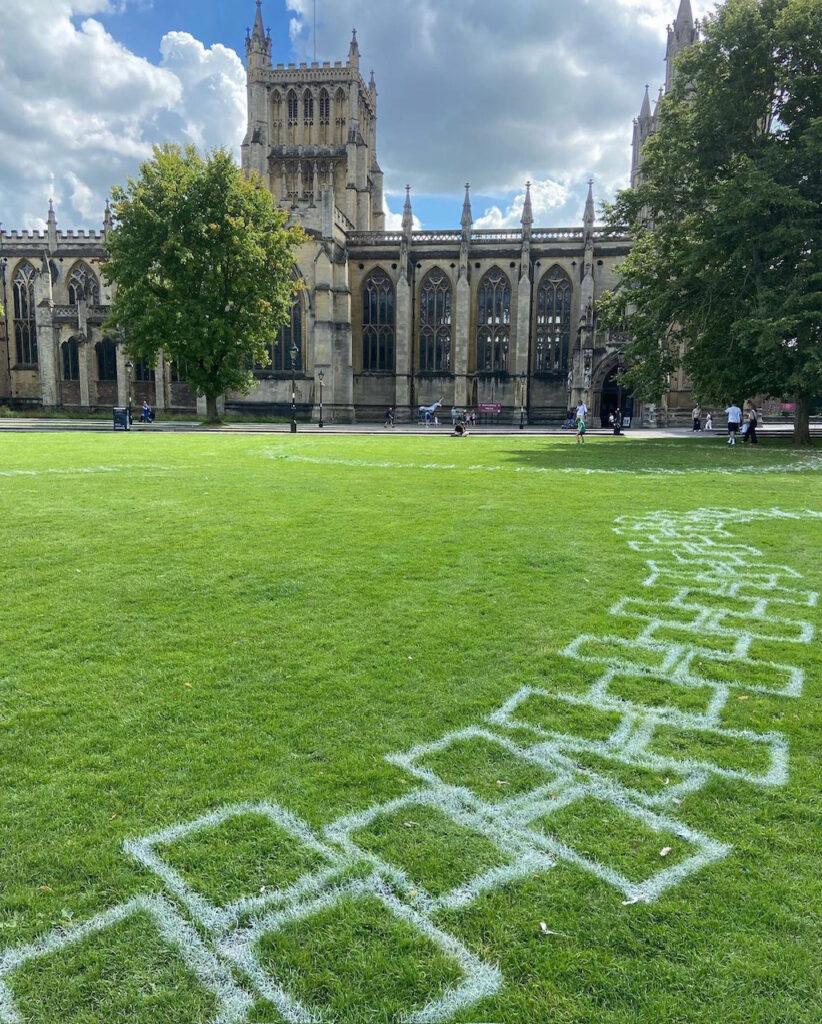 College Green, in front of Bristol City Council Building and next to Bristol Cathedral, saw a giant 500m long hop scotch along with two others being installed in the city centre by the Upfest crew. To celebrate the 650th anniversary of Bristol receiving its independent city status by royal charter from King Edward III in 1373, the hop scotches, made up of 650 tiles, invited the public to interact and play during the summer holidays.