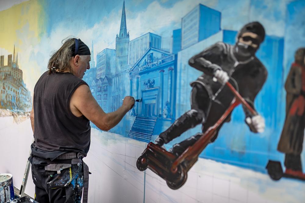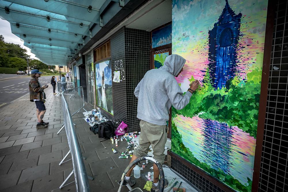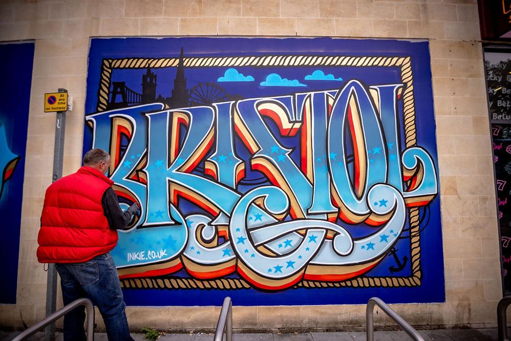 Along with the hop scotch 650 celebrations, Upfest set to the derelict shop fronts of the Clifton Triangle and presented a paint jam in a ‘renaissance style’ to celebrate 650 years of Bristol. Each artist was tasked to paint with paint brushes to reflect the painting style of the time 650 years ago. Artists invited along for the weekend celebration included Jody, Martin D’Arcy, Will Cross, Cheba, Aspire, Georgie Webster, Andrew Burns Colwill, Rose Popay and Tozer with Inkie doing his thing in the city center.