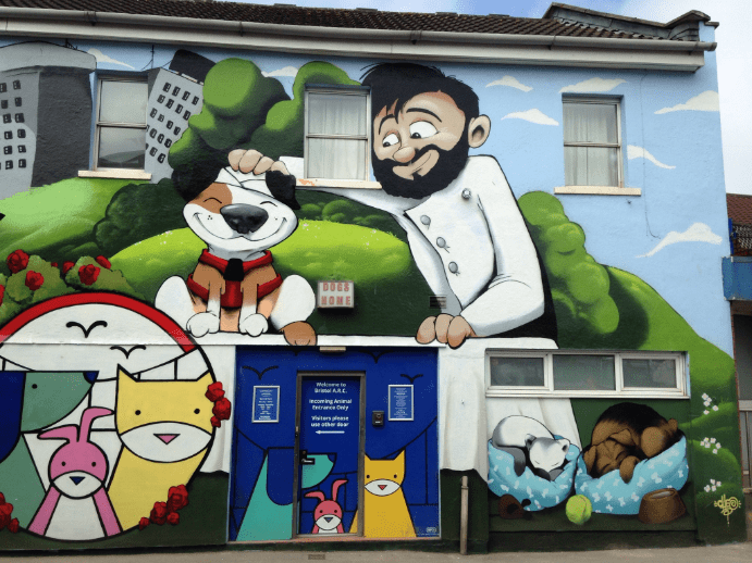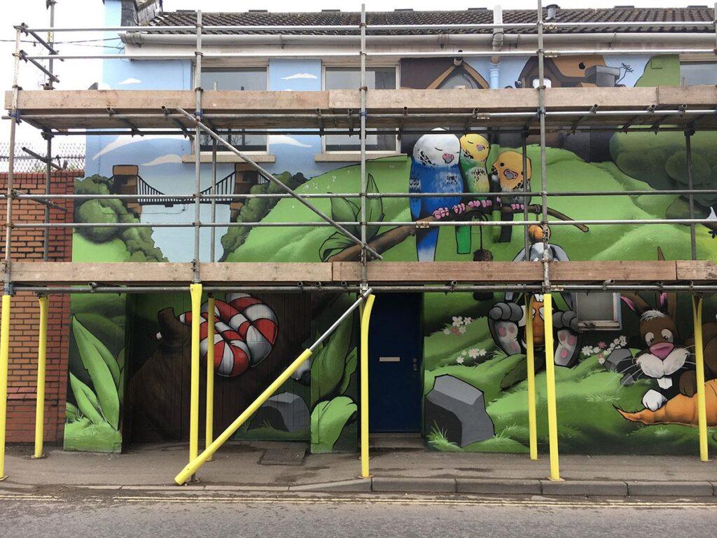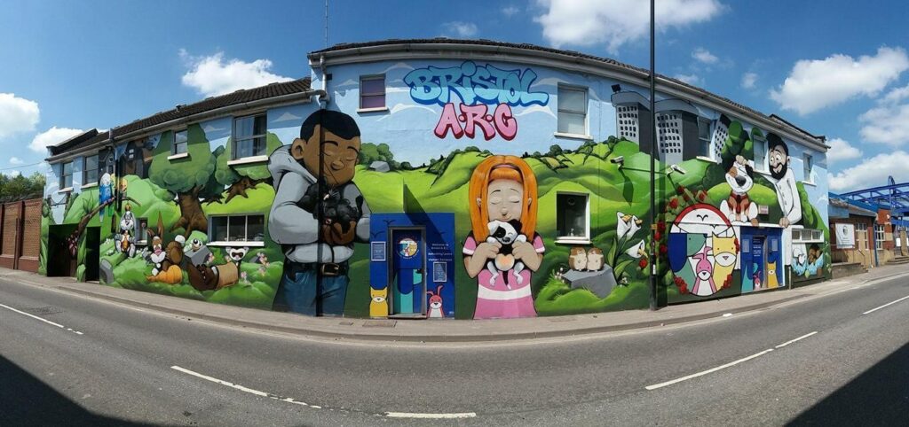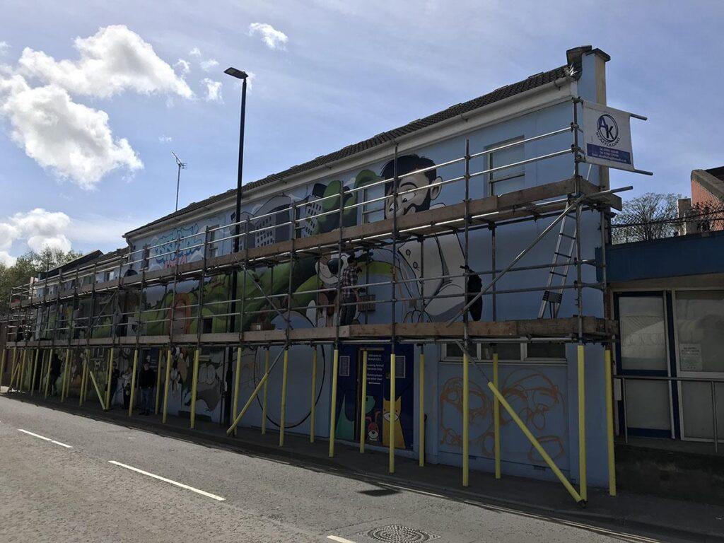 We were commissioned by Bristol ARC, to rejuvinate their tired looking building. Cheo was brought on board to create his much loved character style.