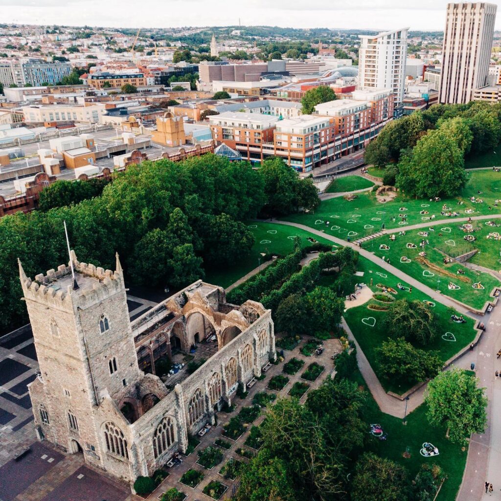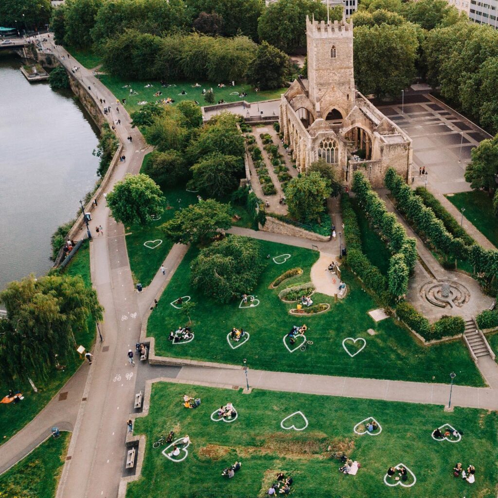 In collaboration with We Are Plaster, Bristol Bid and Visit Bristol we painted 374 socially distanced giant hearts across 3 sites in Bristol city centre for the #BristolTogether campaign. These hearts were to encourage and promote the safe reopening of our city after the lockdown of 2020.