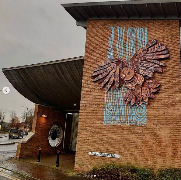 Bristol libraries commissoned Upfest to create a public art installation to enhance the visibility of Fishponds Library. The owl was chosen as a symbol of knowledge.