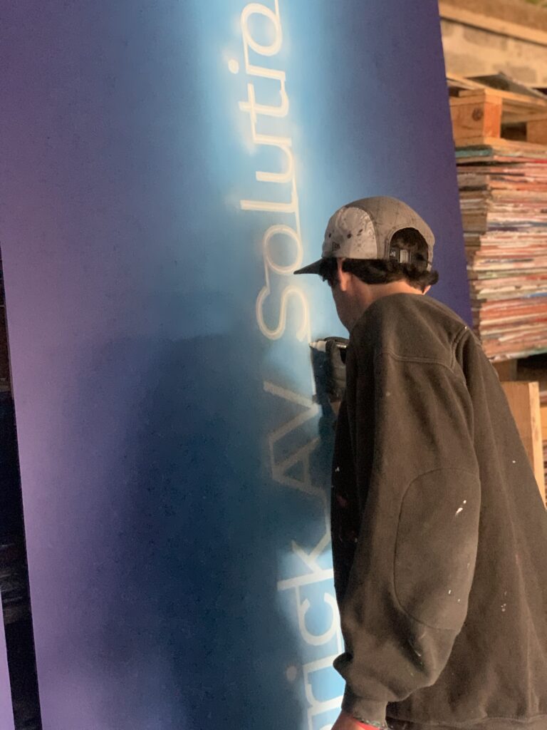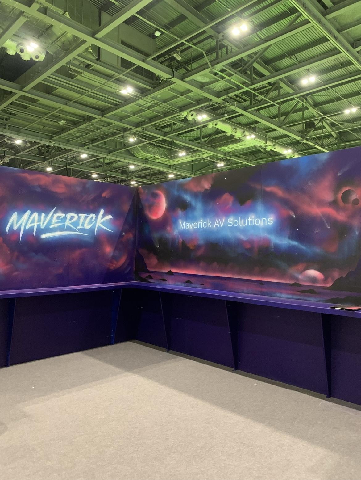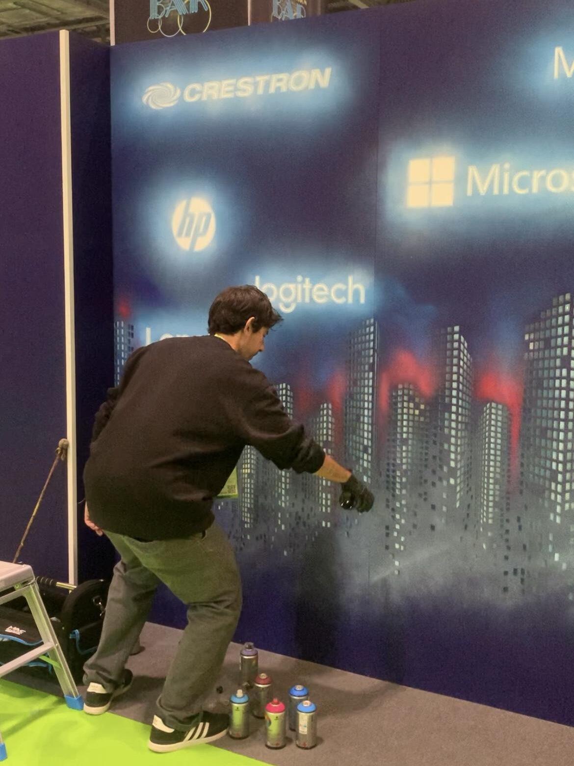 Commissioned through Plaster PR agency, Upfest orchestrated a live painting element for Maverick’s stand at the UCX trade show to enhance their client experience. With elements pre painted, Hasan Kamil was brought in to complete the painting across the two day event.