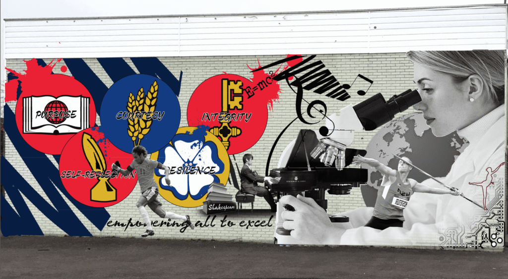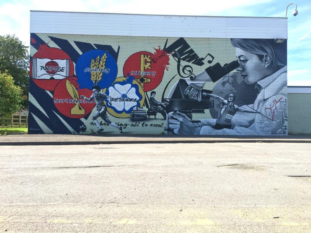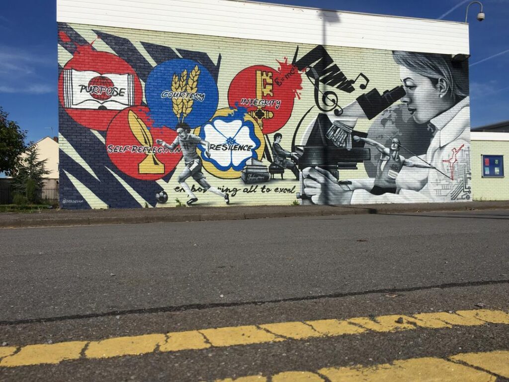 As part on the new build of Winterbourne academy, Upfest were commisisoned to create a mural to depict the schools ethos, painted by Zase